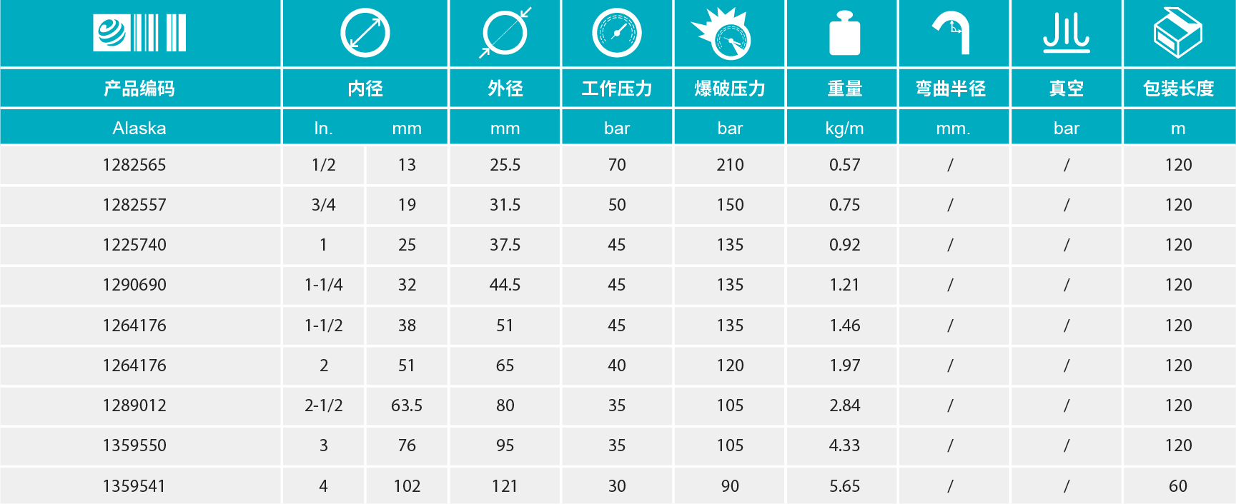 具有钢线加强层的压缩空气管;用在高压力的工作环境,多种尺寸和工作压力可提供。