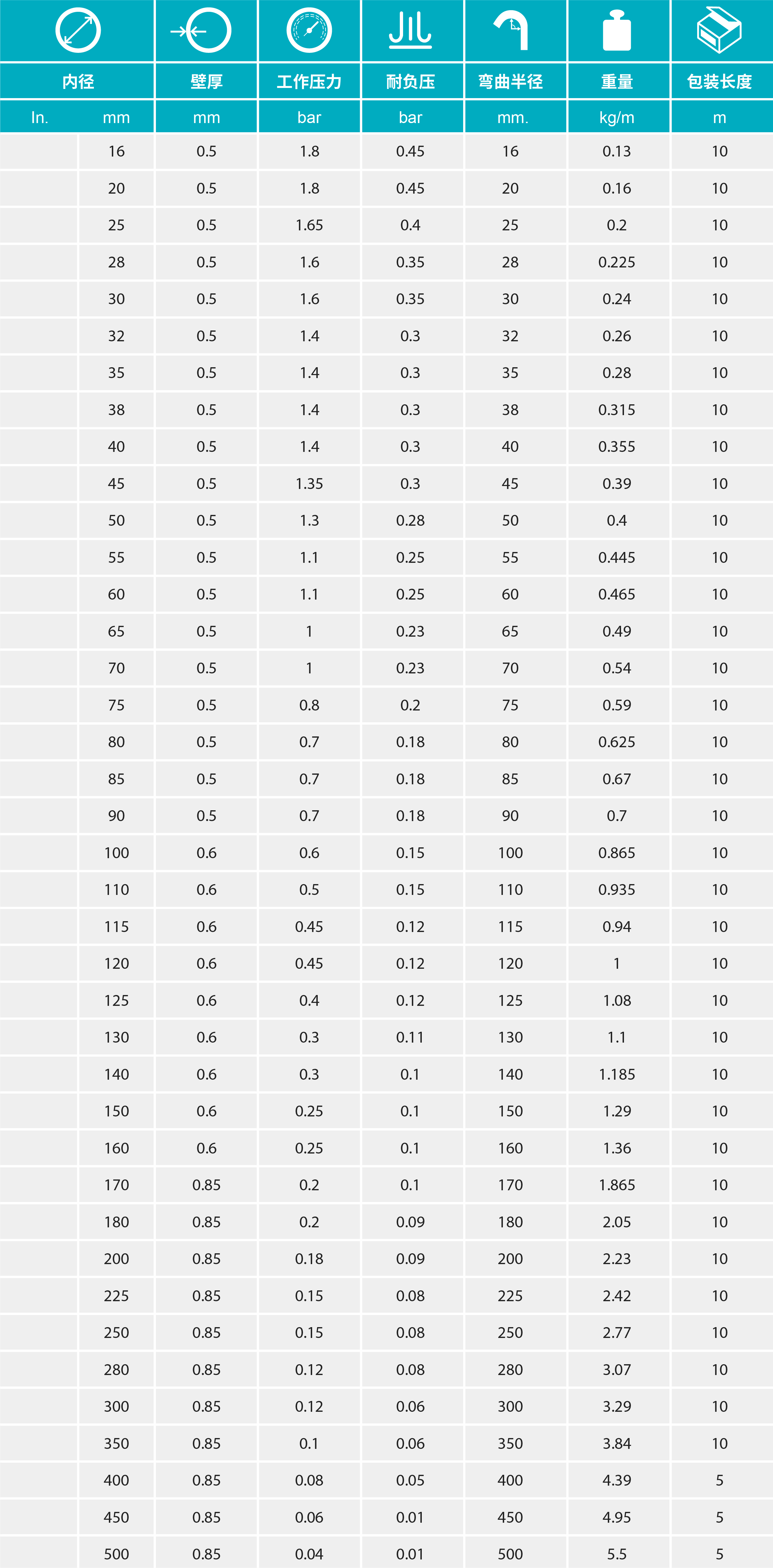 - 内壁平滑以保证物料在管内流动顺畅,具有良好的柔韧性