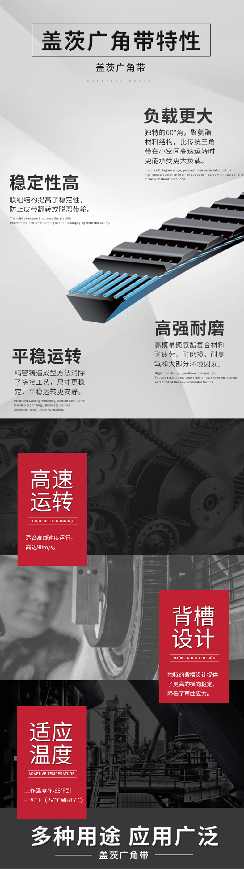 联组皮带结构增加了皮带的稳定性,防止皮带翻转和跳出槽轮。