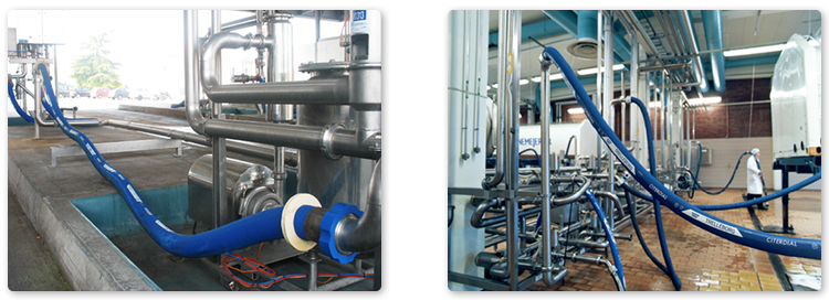 针对牧场内奶罐车收奶,工厂卸奶的现场工况,考虑到经常发生车辆压瘪收奶管的情况,我们为您贴心推荐防车轧软管方案,其特殊构造使其拥有极高的回弹性,能有效防止软管因车辆碾压到导致的变形、开裂、流量变小等情况。满足食品级认证。