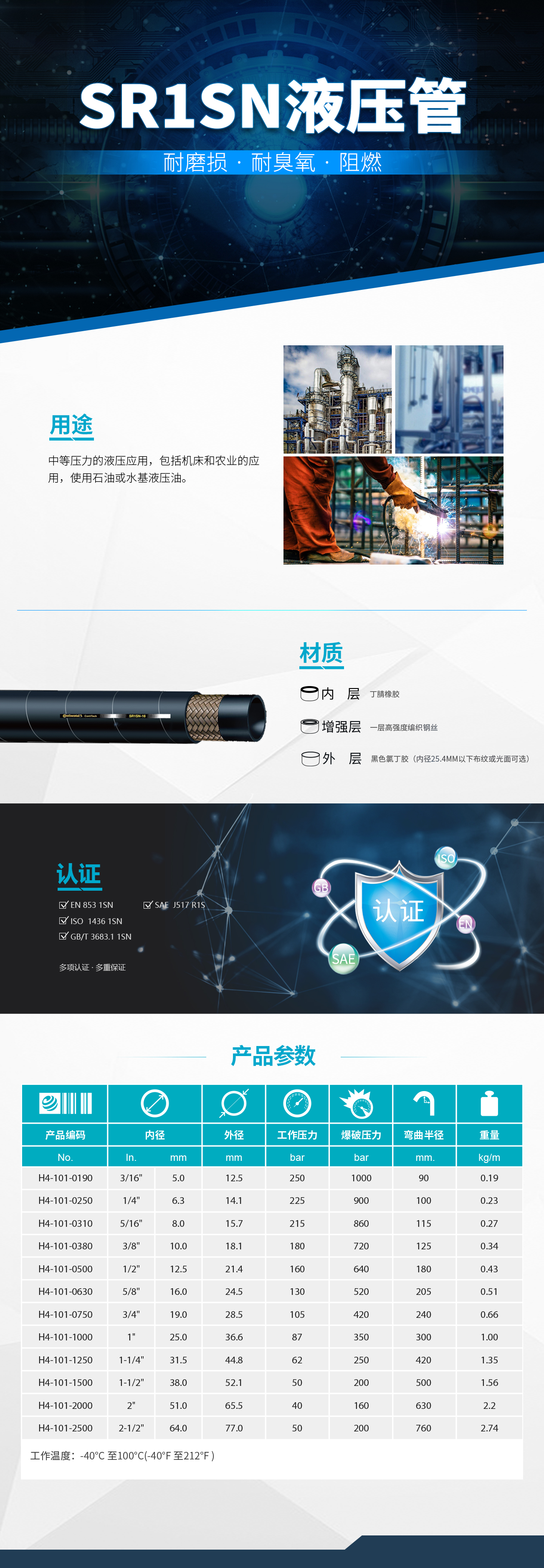 EN853 1SN ,GB3683.1 1SN,SAE J517 R1S,ISO 1436 1SN