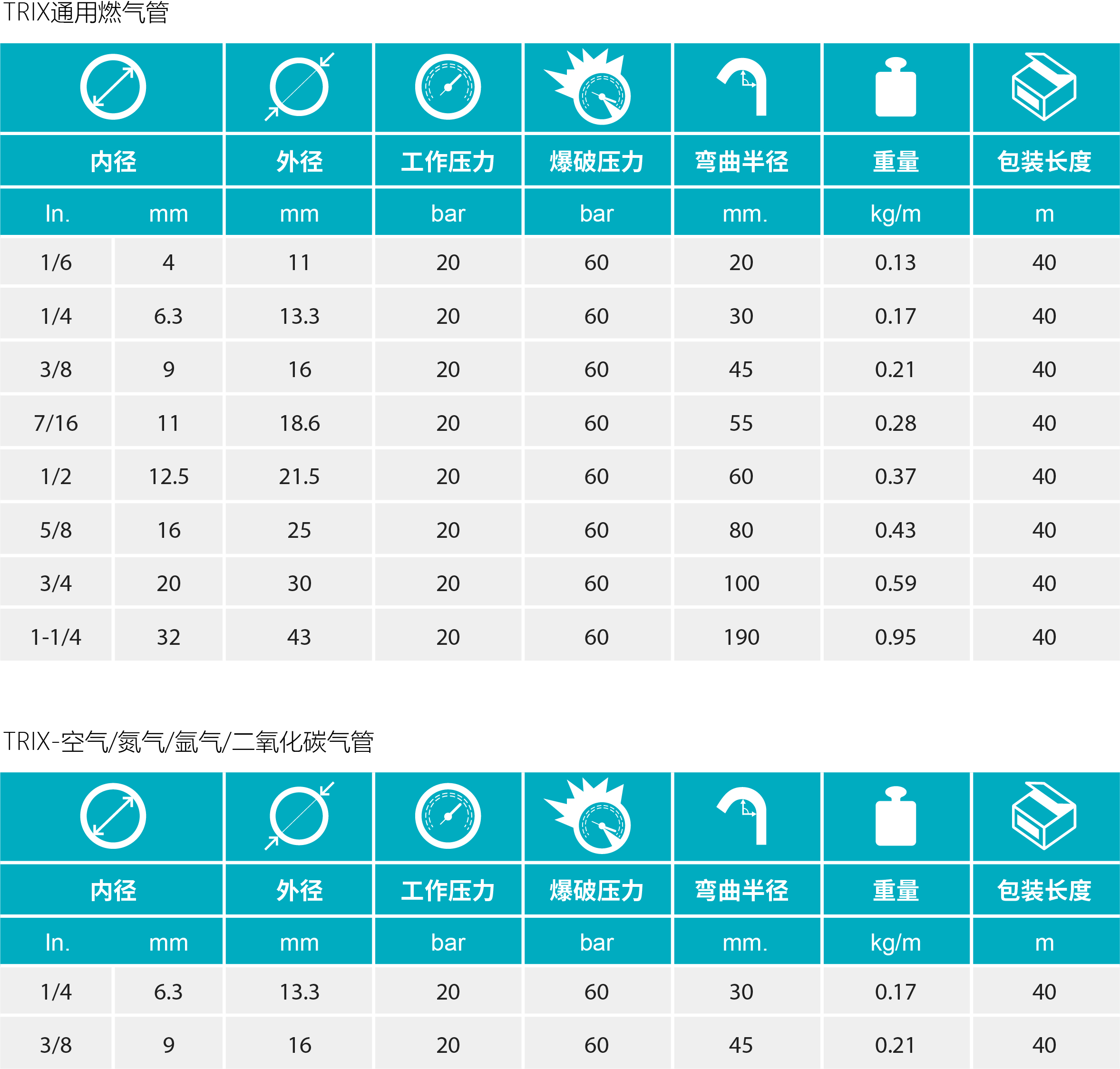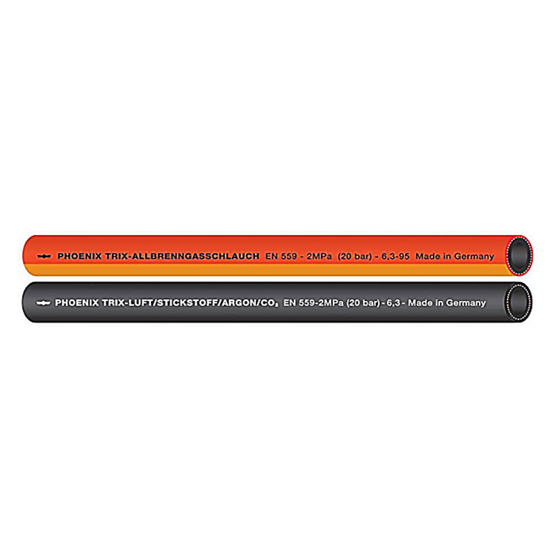 - TRIX 通用燃气管适用于输送任何可燃气体,包括DIN 51622 标准液态燃气,丙烷/丁烷,天然气,DMF、MPS 和 LPG。软管符合EN559标准,提供安全保障。软管非常柔软,耐臭氧及环境,表面光滑防尘。 TRIX空气/氮气/氩气/二氧化碳软管适用于输送非燃气体。软管符合EN559标准,提供安全保障。软管非常柔软,耐臭氧及环境,表面光滑防尘。