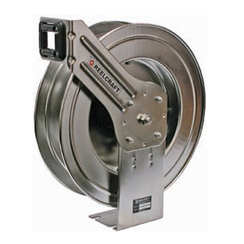 不锈钢卷轴全部采用美国304级优质不 锈钢制造而成,使用锐技抗腐蚀不锈钢卷轴,将会延长用于输送化学流体或用来清洗的软管的寿命。通过合理的存放 不使用的软管,可以减少由于软管存放杂乱无序引起的绊倒事故,同时改善工作环境。不锈钢卷轴使用范围广泛, 例如:食品生产、清洗,化学物质的输送,以及工业溶剂处理。同时不锈钢卷轴还可应用在沿海和海上对抗腐蚀有苛刻要求的环境中。旋转接头使用 Viton“O”型圈。