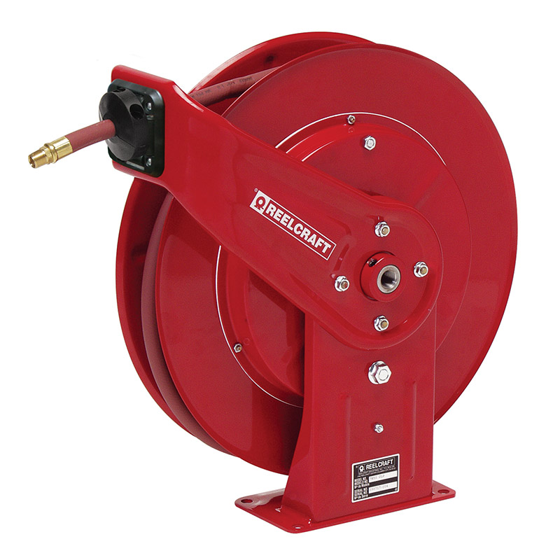 7000系列产品设计精良,经久耐用,是高要求应用场合的理想选择。卷轴基座和导向架由高品质碳钢制造而成,结构坚固,标准低压软管仅适合输送压缩空气和水。同时提供中压、高压产品。导向架可以根据需要调整到四个不同方向。