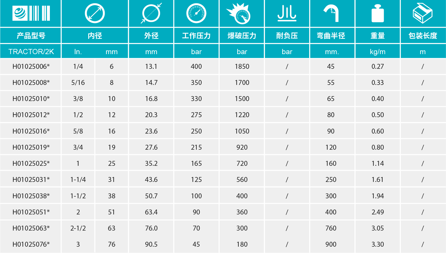 高柔韧性和弯曲半径极小 重量轻 型号扩展到DN76 至DN76均通过SAE 100 R4抗真空认证