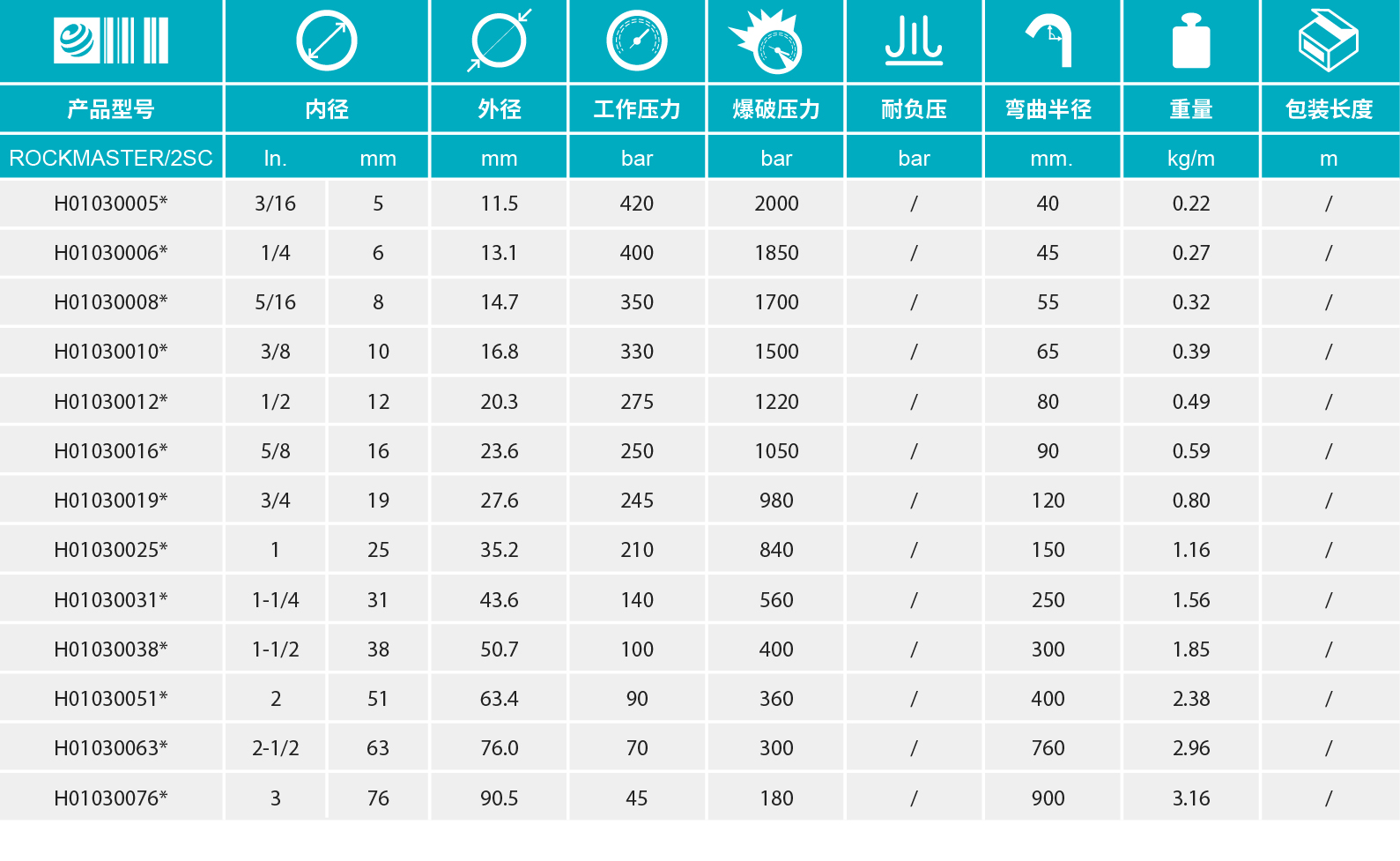 - 【应用标准】 超过EN 857 2SC - ISO 11237-1 2SC, SAE 100 R 16S