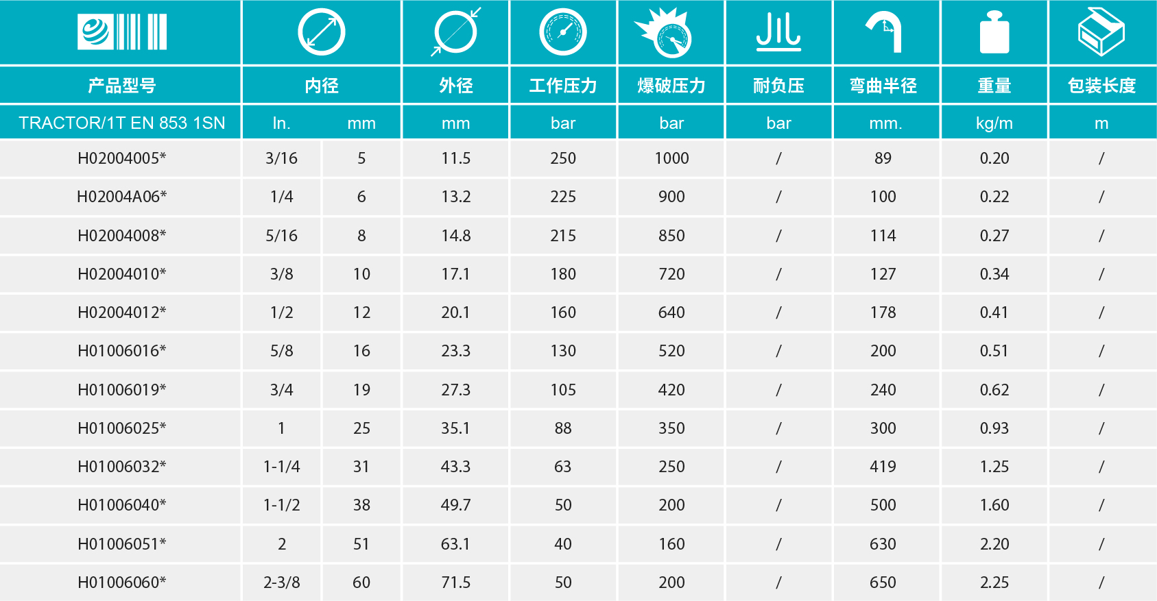- 【应用标准】EN 853 1SN - SAE 100 R1AT - ISO 1436-1 1SN/R1AT