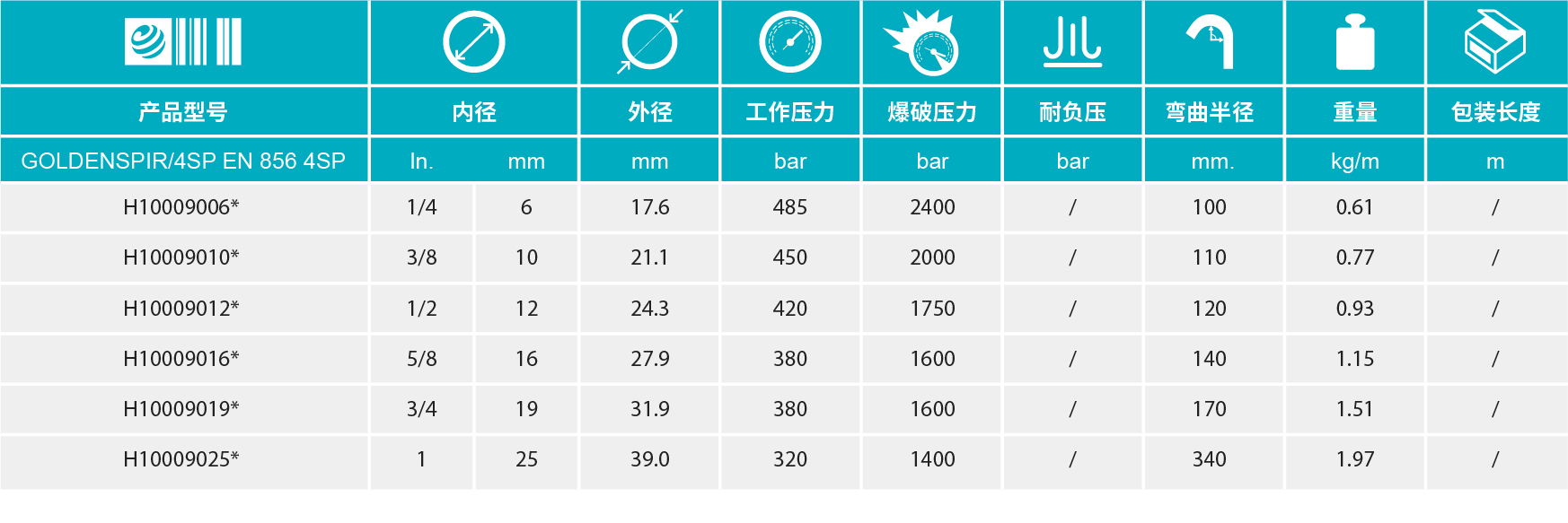 - 【应用标准】EN 856 4SP - ISO 3862-1 4SP