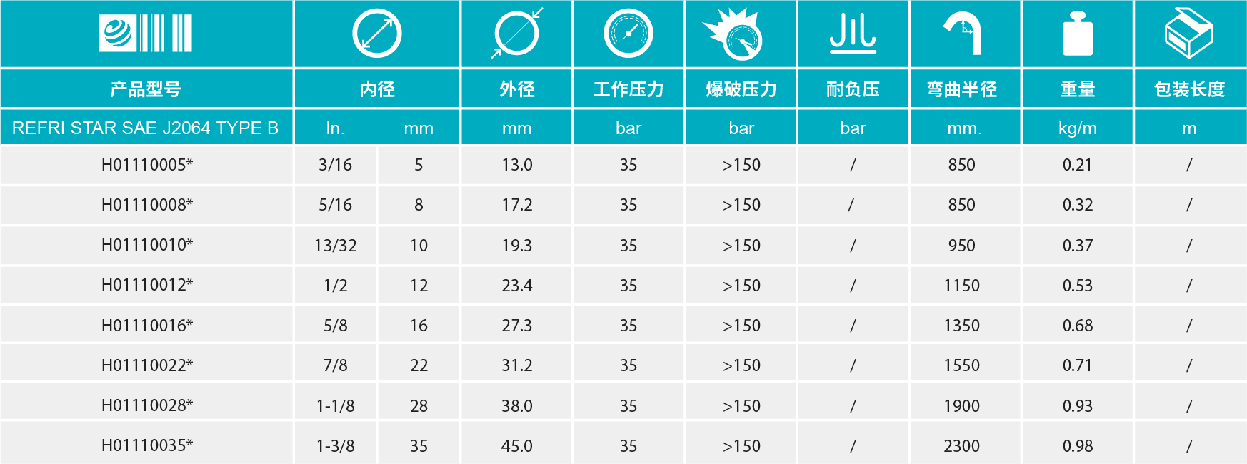 低渗透性 高柔软度 兼容绝大多数普通制冷剂和压缩机润滑剂