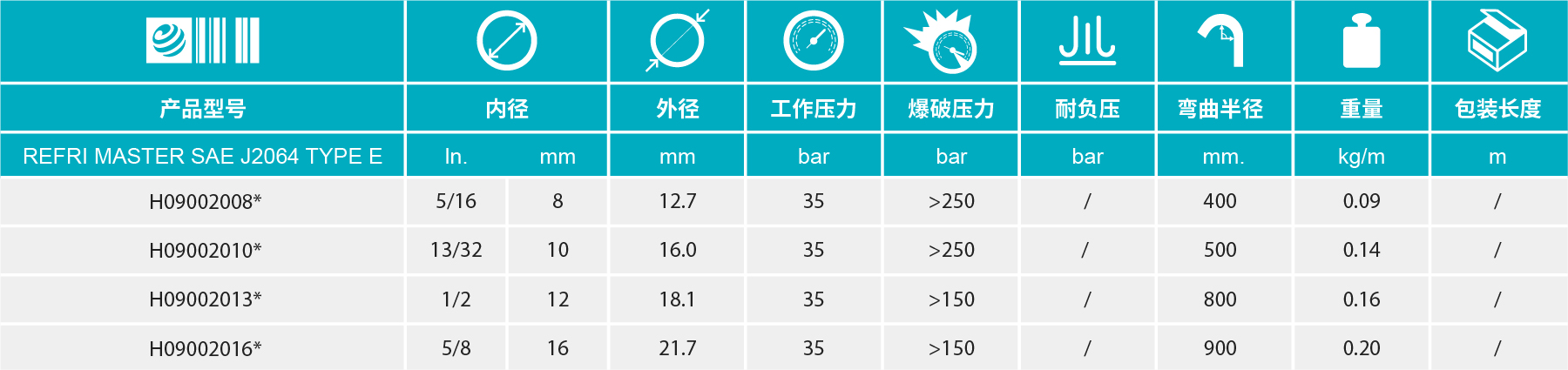 通用性胶管,兼容绝大多数普通制冷剂和压缩机润滑剂 制冷剂低渗透率 尺寸紧凑