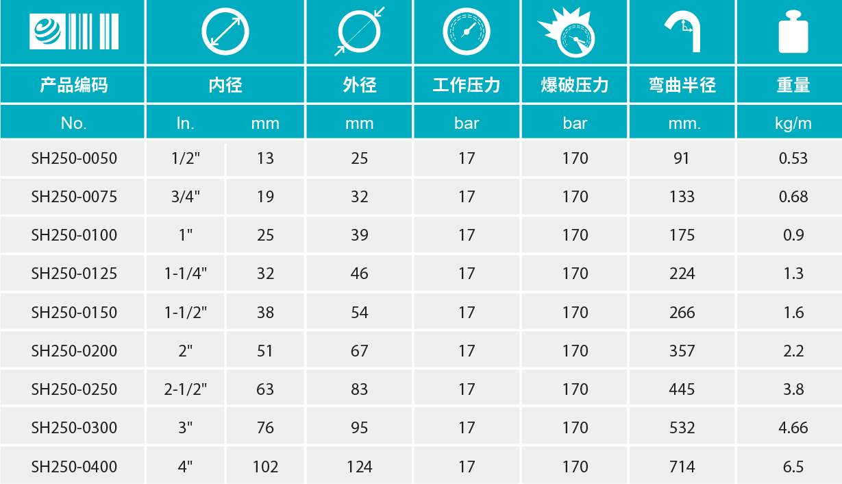 心轴高压钢丝加强型蒸汽管,适用于热控,消防等超热蒸汽。工业应用中压力可达17bar或250psi。