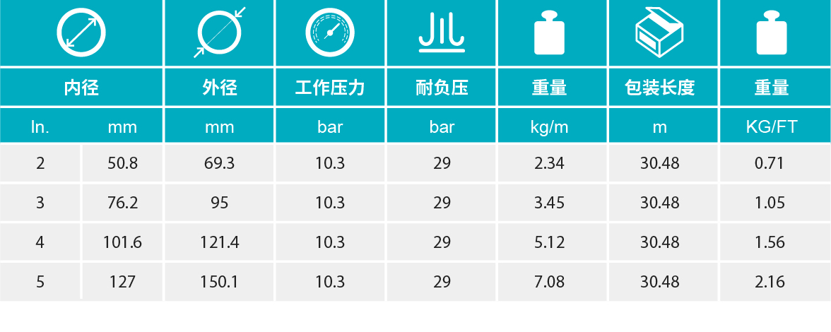 【增强层】多层螺旋缠绕的合成纤维,带两条镀锌金属螺旋丝