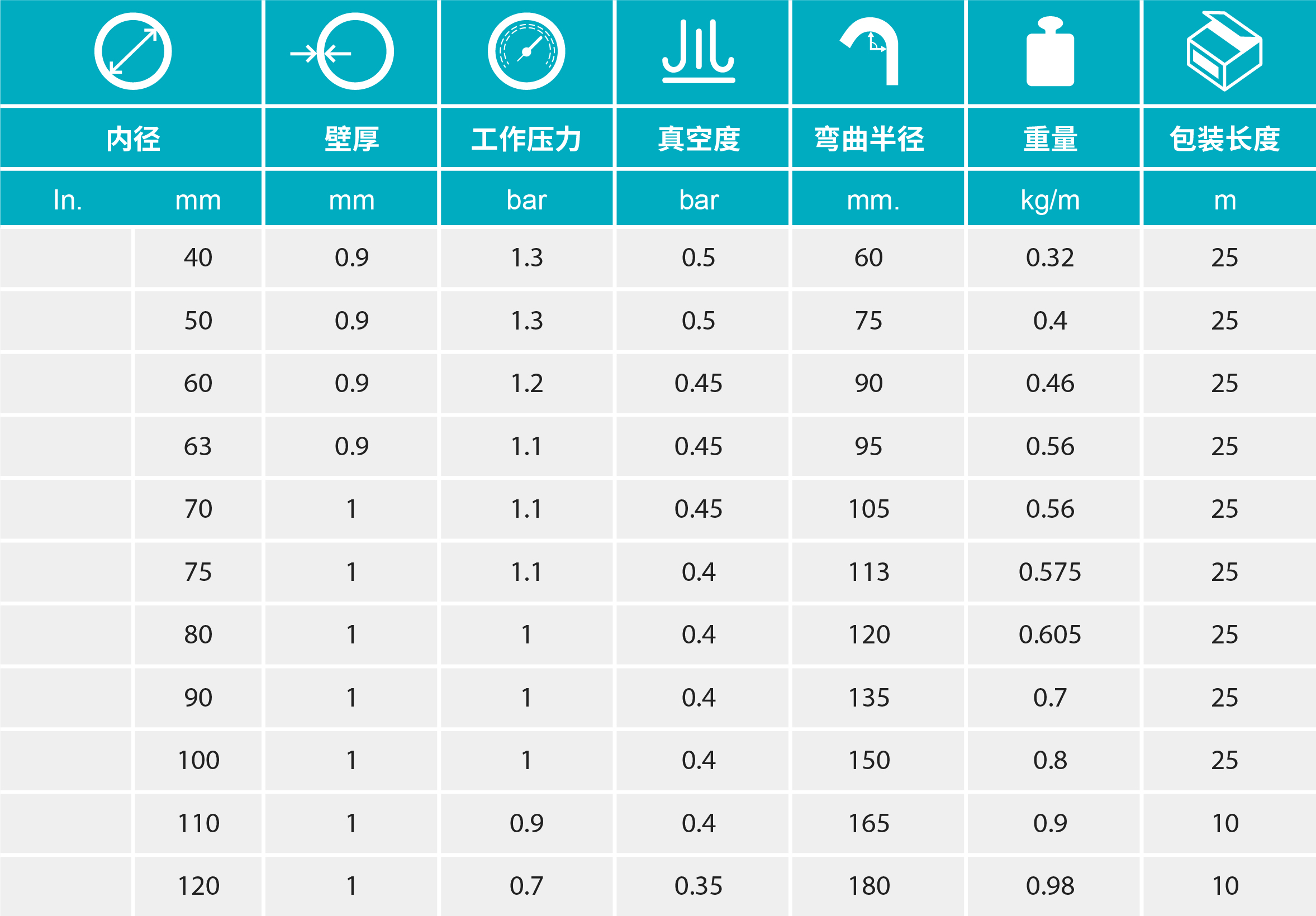 该软管用作空气,烟雾和灰尘等吸排,以及无压力液体输送,广泛用于木材加工,清洁行业,家居清洁,船舶行业等