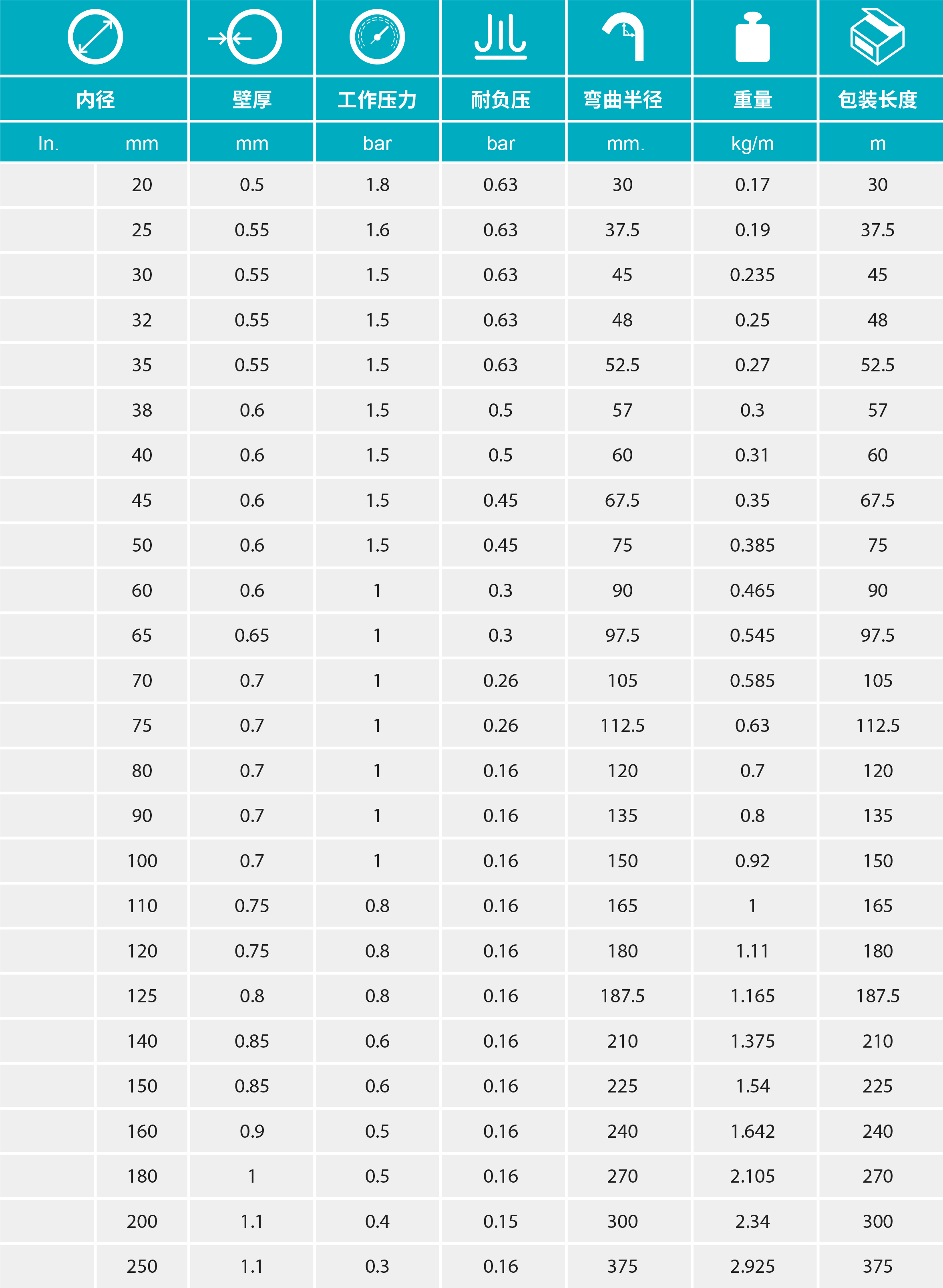质极轻且具有良好的柔韧性,内壁平滑以保证物料在管内流动顺畅
