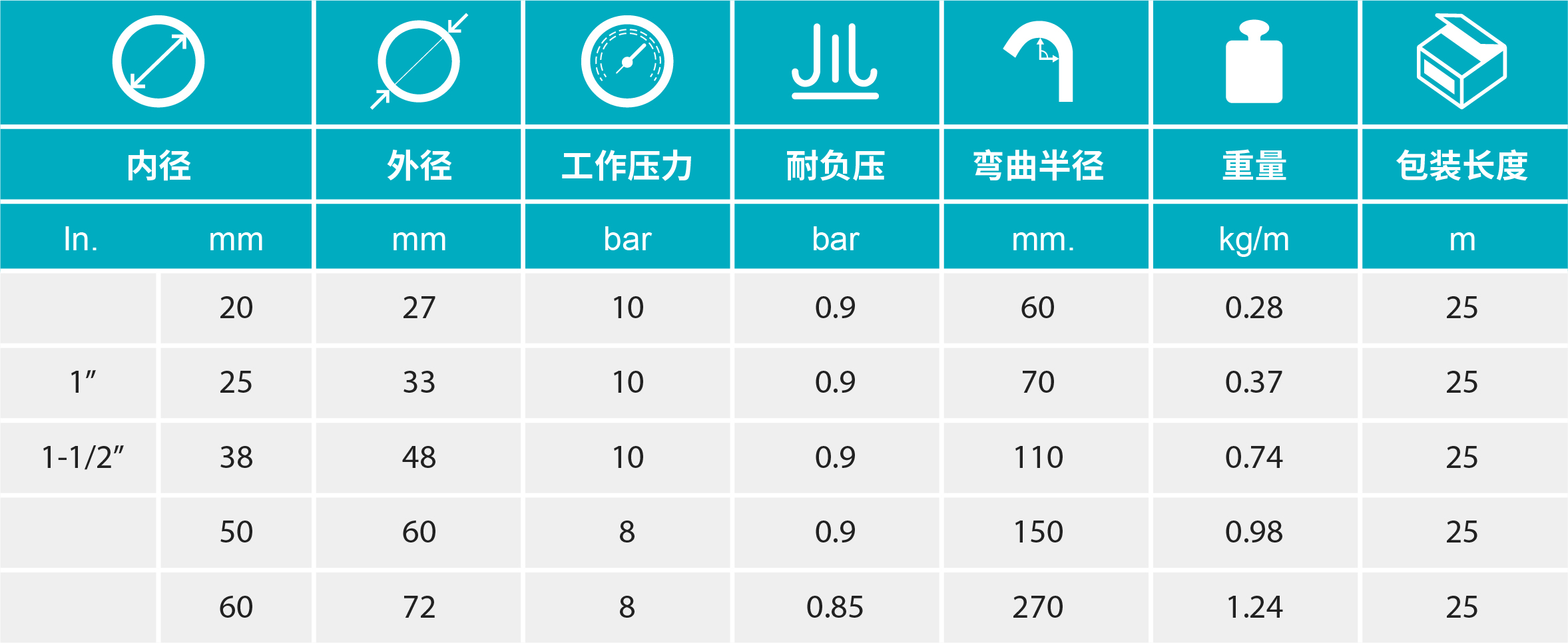 PVC螺旋塑筋增强,使软管具有良好的抗冲击性能