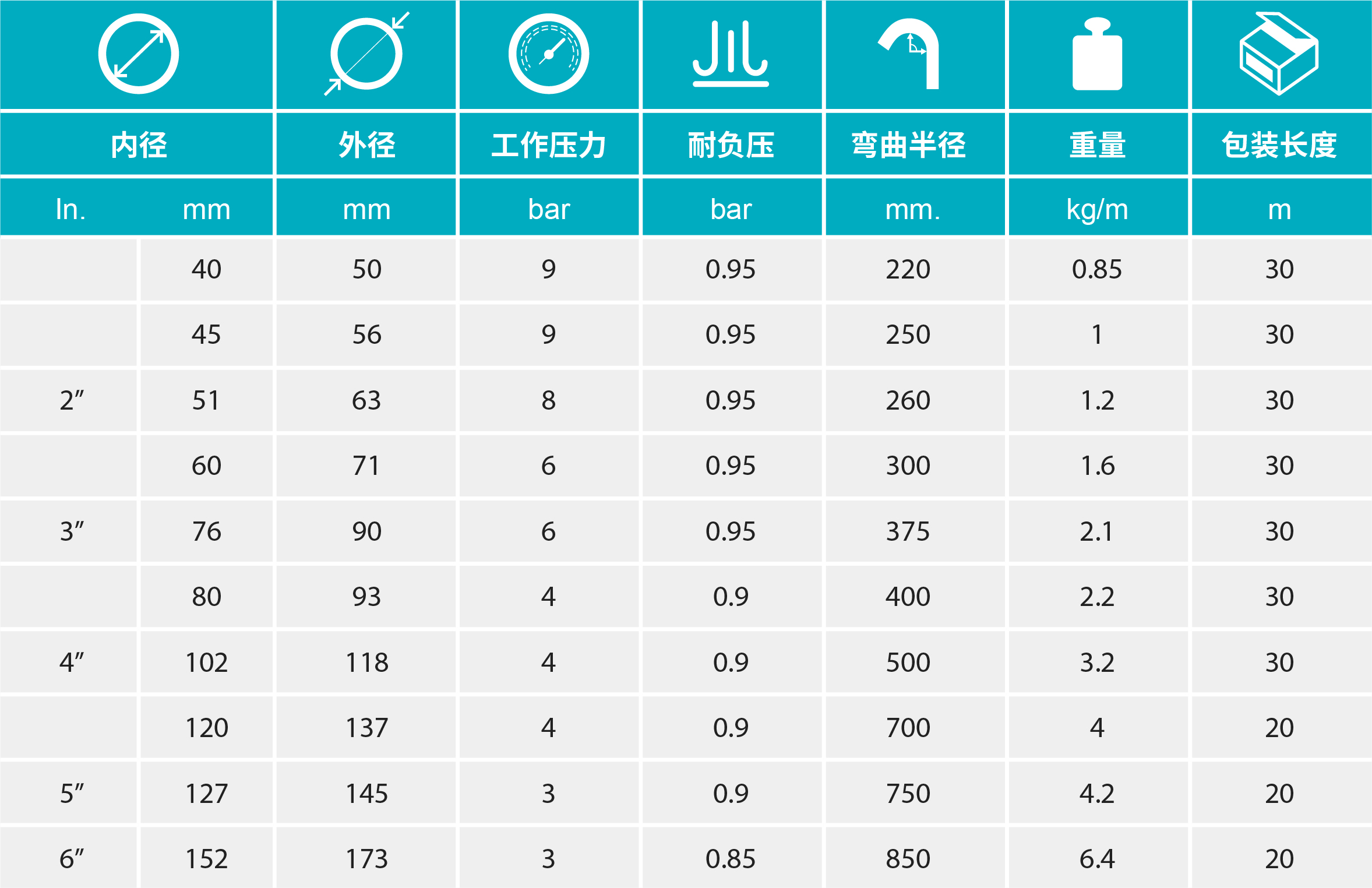 耐磨TPU材质,适用于各类磨损性物料的排吸,内置铜丝导静电