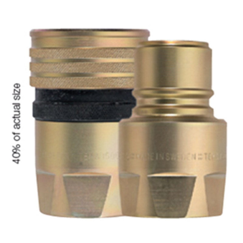直通型-确保最小压降。双O形密封圈实现双重保护。配有安全锁紧环防止意外脱落。耐腐蚀。结构紧凑。阴接头和阳接头配有压力释放器,可以带压操作。注意:当订购配有压力释放器的阴接头时,相应的阳接头也必须配备压力释放器。