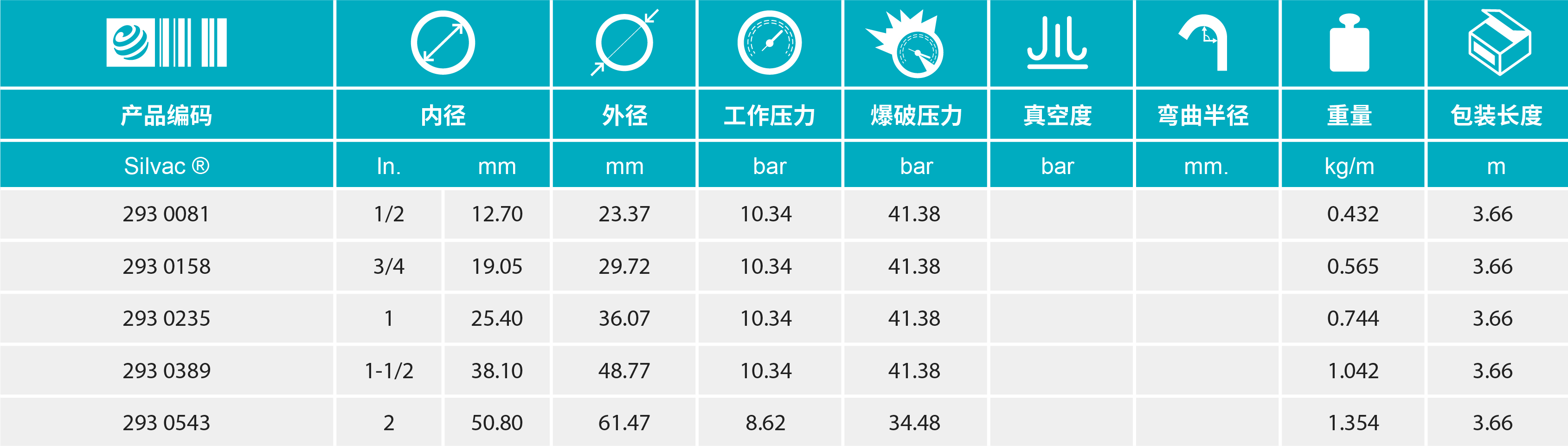 - 聚酯编织和螺旋不锈钢丝强化层嵌入硅胶软管管壁中 在高温下具有真空度:29.9 in./Hg. 能够耐受的温度极限为:-80°F(-62°C)到350°F(176°C) 无臭,无味,化学惰性 所有成分均是无毒的,经过FDA(CFR 177.2600)认证,可用于食品表面接触 耐受破裂和扭结,弹性好 在专业仪器和受控环境中生产