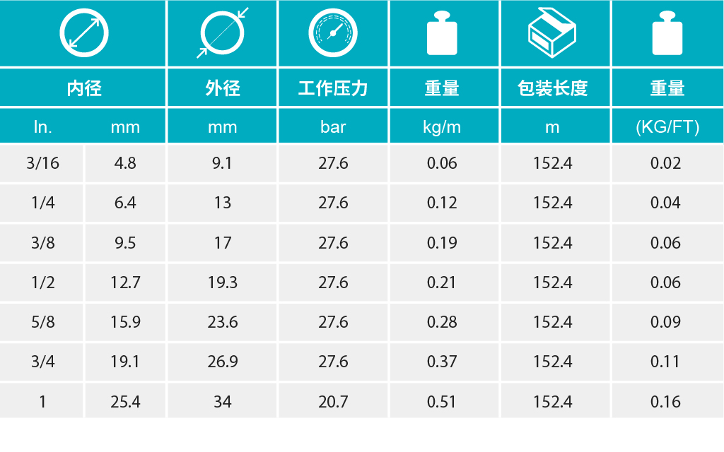 - 在300 psi的工作压力条件下,与push-on配件配合使用.用于低压液压、启动输送系统,如机器人系统、车间气源系统、一般性工业作业、维护性作业和汽车装配等方面的用途。本品具有绝缘性,在1000伏直流电的条件下,胶管上每英寸长度的最小电阻大于1兆欧姆。