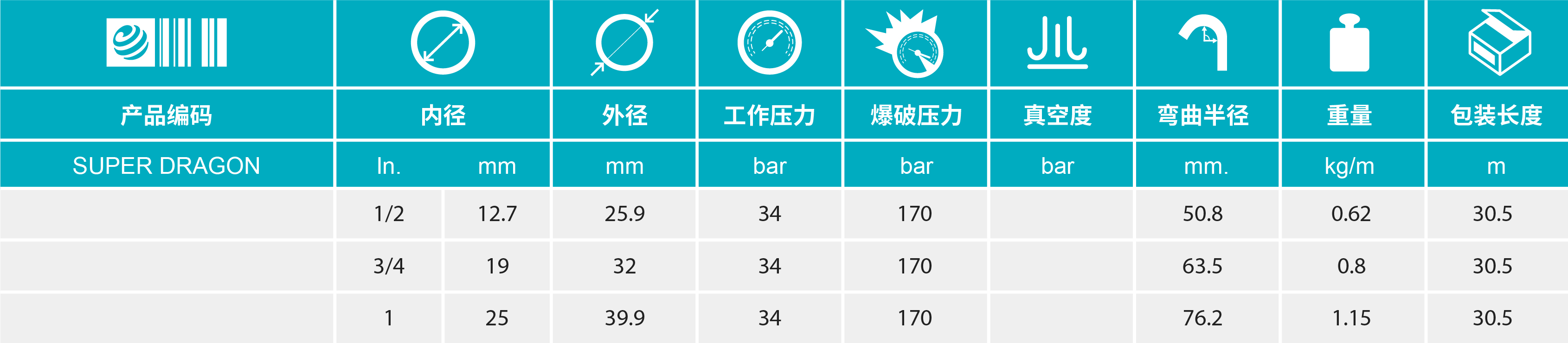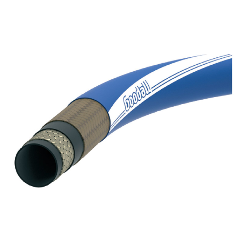 增强层:高强度钢丝编织,编织层镀黄铜可耐腐蚀;单层纱线结构使软管粘附等级更高,软管外壁防起水泡和防刮破的性能更好