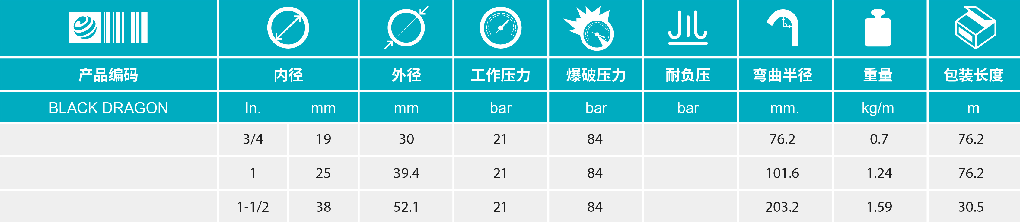 增强层:多层高强度钢丝编织,编织层镀铜耐腐蚀