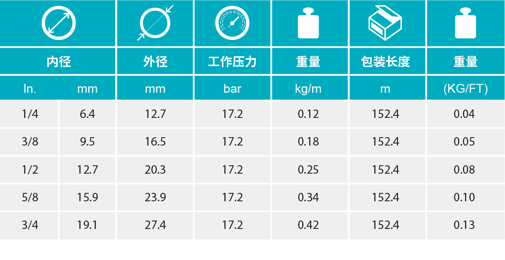 用于低液压和气动用于带有推进式接头压力位250psi场所,适用于工业,维修业等。该管不导电,在1000伏直流电压下,每英寸的min电阻要高于1兆欧姆。