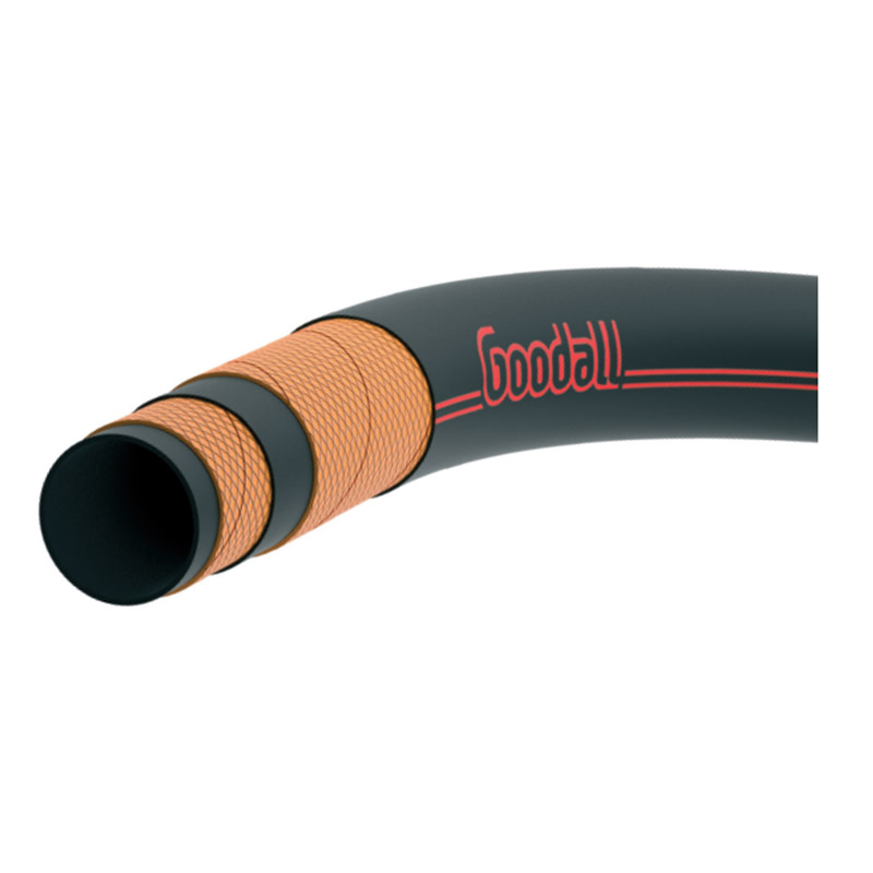 内胶层:黑色导电EPDM合成橡胶 增强层:多层高强度合成纤维螺旋 外胶层:黑色、导电EPDM合成橡胶;具有耐高温、耐磨、耐候和耐臭氧性能 工作温度:-40°C到+165°C 爆破压力:最小值60bar 安全系数:热水3:1,蒸汽10:1 标准长度:61m