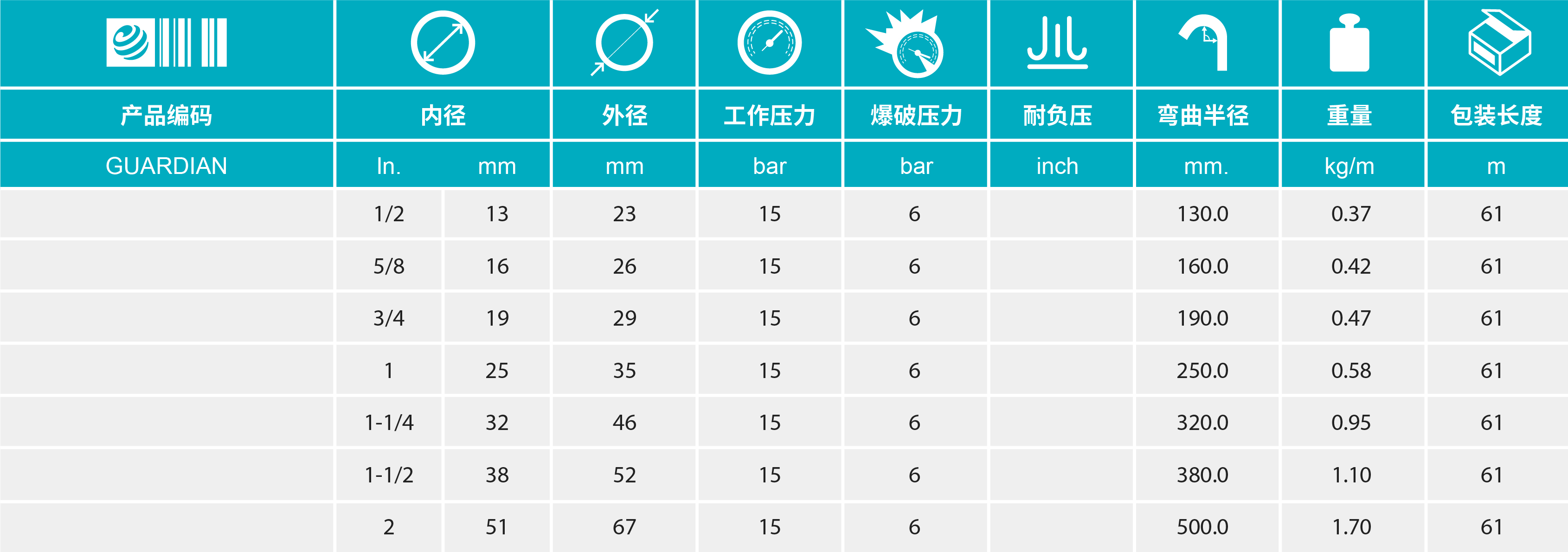 一般工业应用中使用的热水及饱和蒸汽胶管,在 15 bar压力下热水温度可达 90℃;在6bar压力下开放蒸汽温度可达165℃。