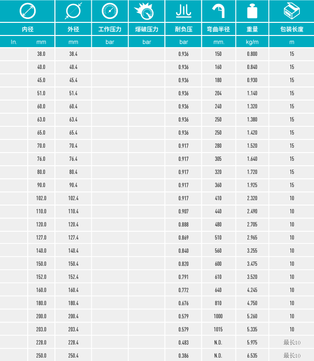 内壁光滑。因其重量有限,所以尽管管壁厚,仍具有很高的灵活性,也易于操作