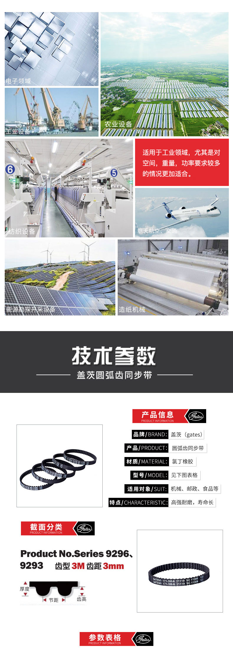 圆弧齿同步带 PowerGrip HTD 橡胶传动带 工业皮带 3M-531