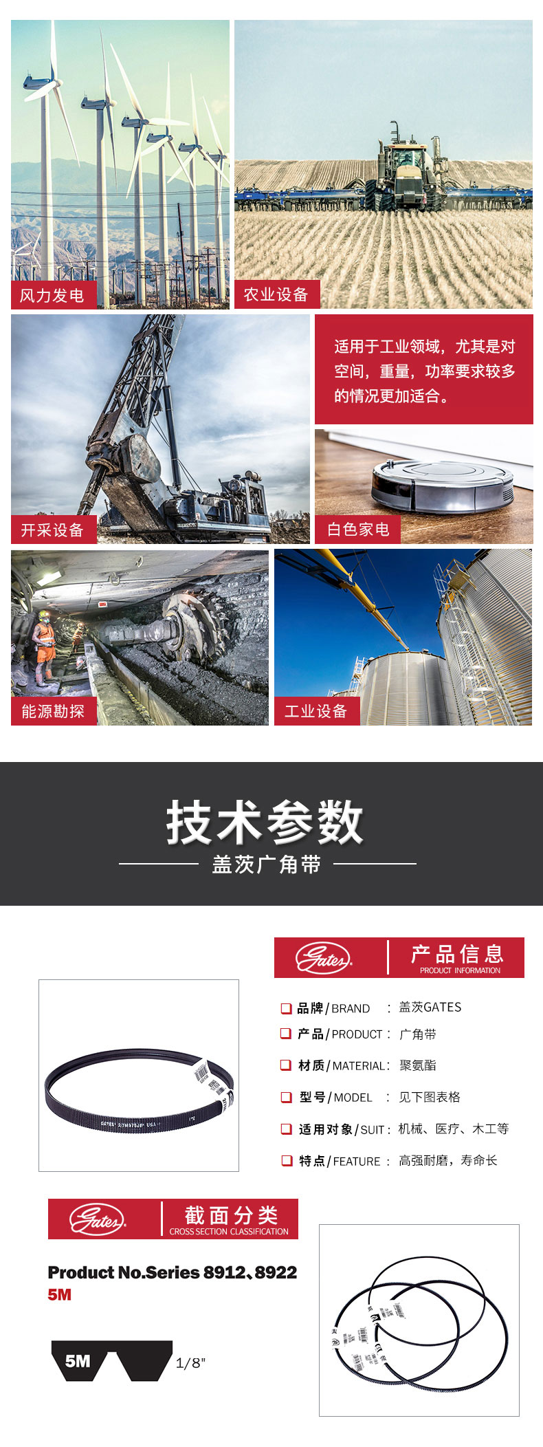 Gates5M联组广角带 聚氨酯联组广角带 2/5M1280JB
