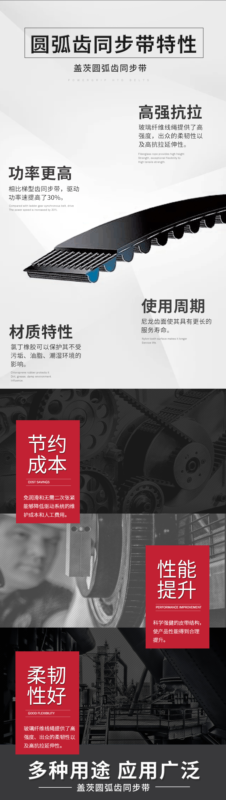 盖茨圆弧齿同步带 PowerGrip HTD 橡胶传动带 工业皮带 966-14M