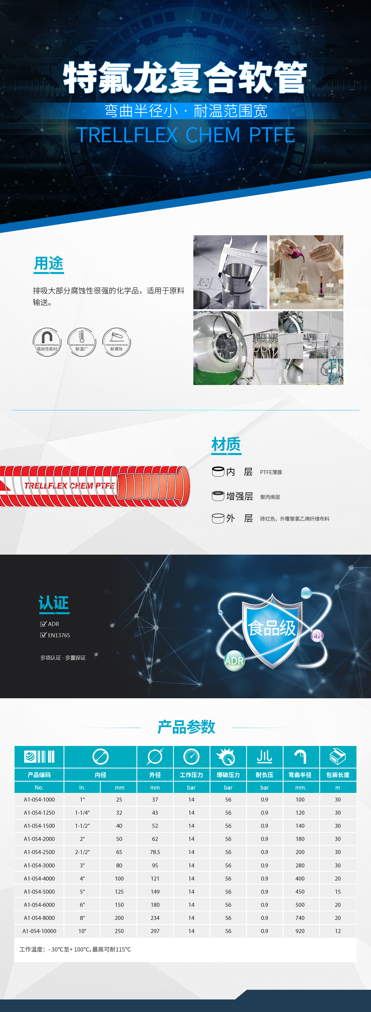 - 螺旋钢丝导静电,≤2.5Ω/m for ID<50mm,≤1.0Ω/m for ID≥50mm