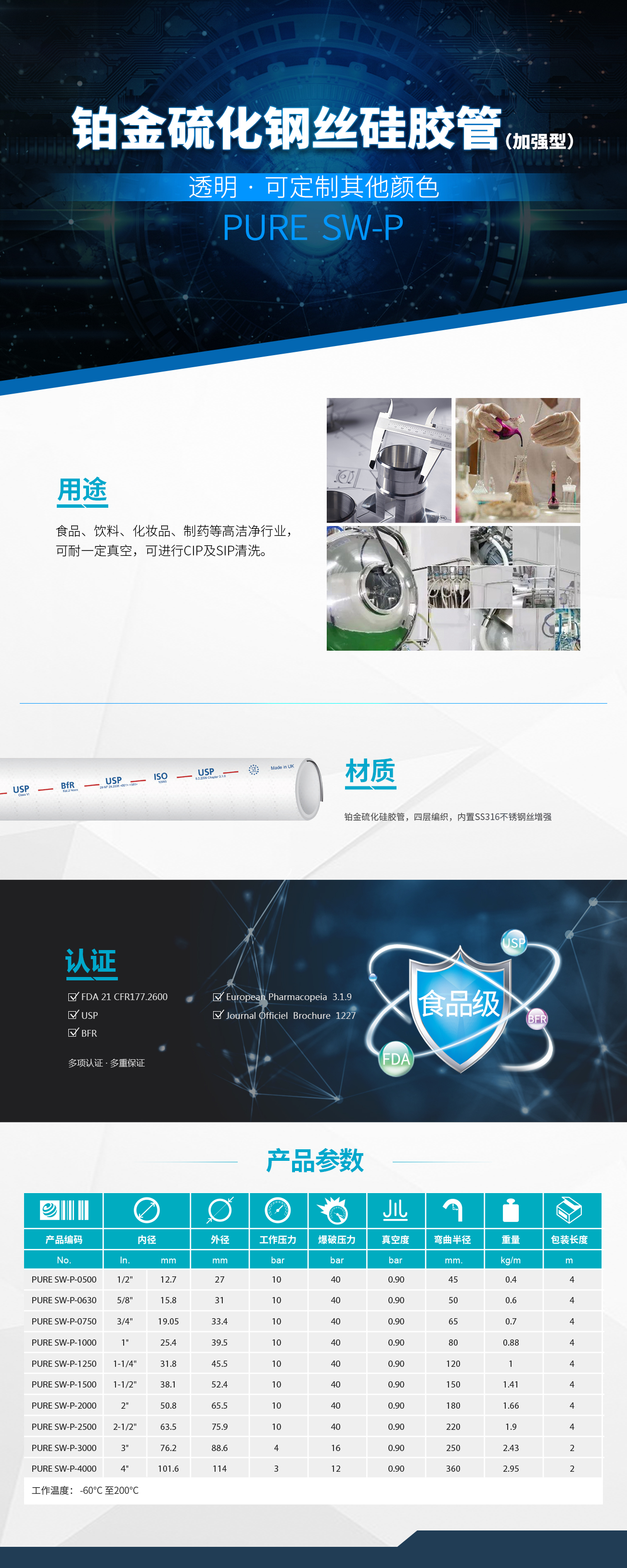 铂金硫化钢丝硅胶管-洁净型 PURE SW-E