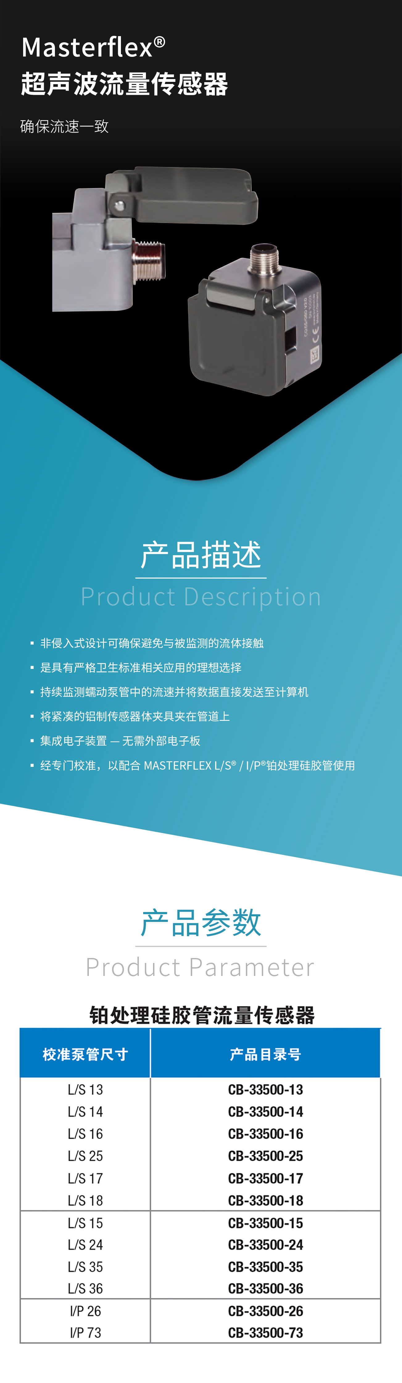 经专门校准,以配合 Masterflex L/S? / I/P?铂处理硅胶管使用