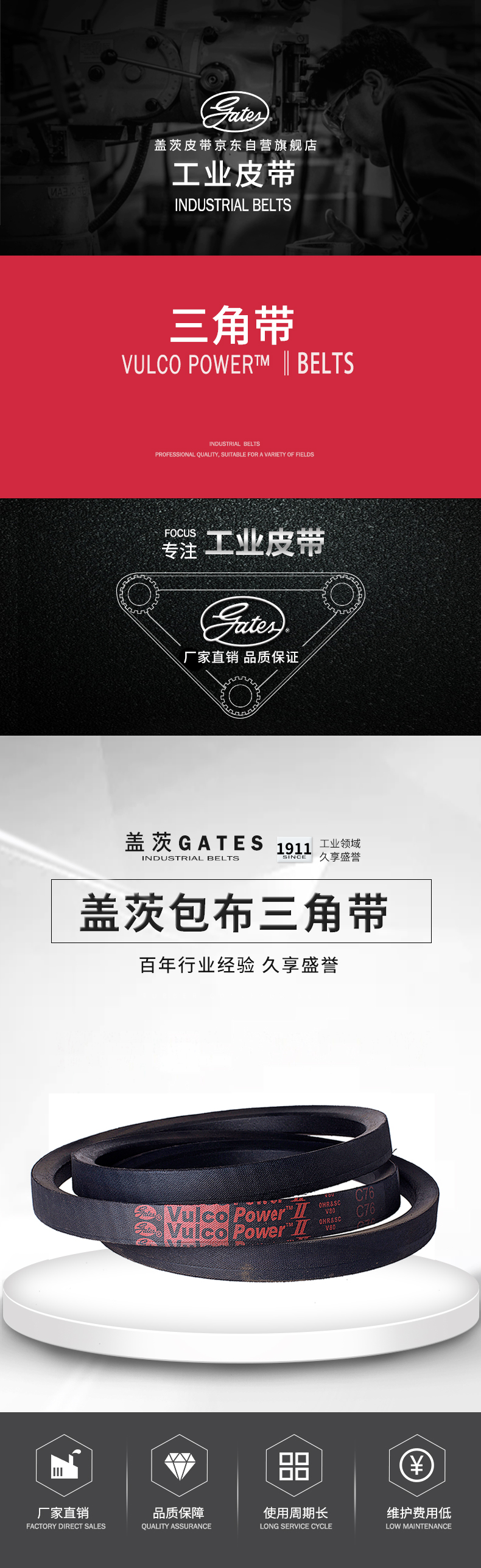侧面凹面设计使皮带与带轮能够更好匹配,外层包布防止磨损或杂物侵入。