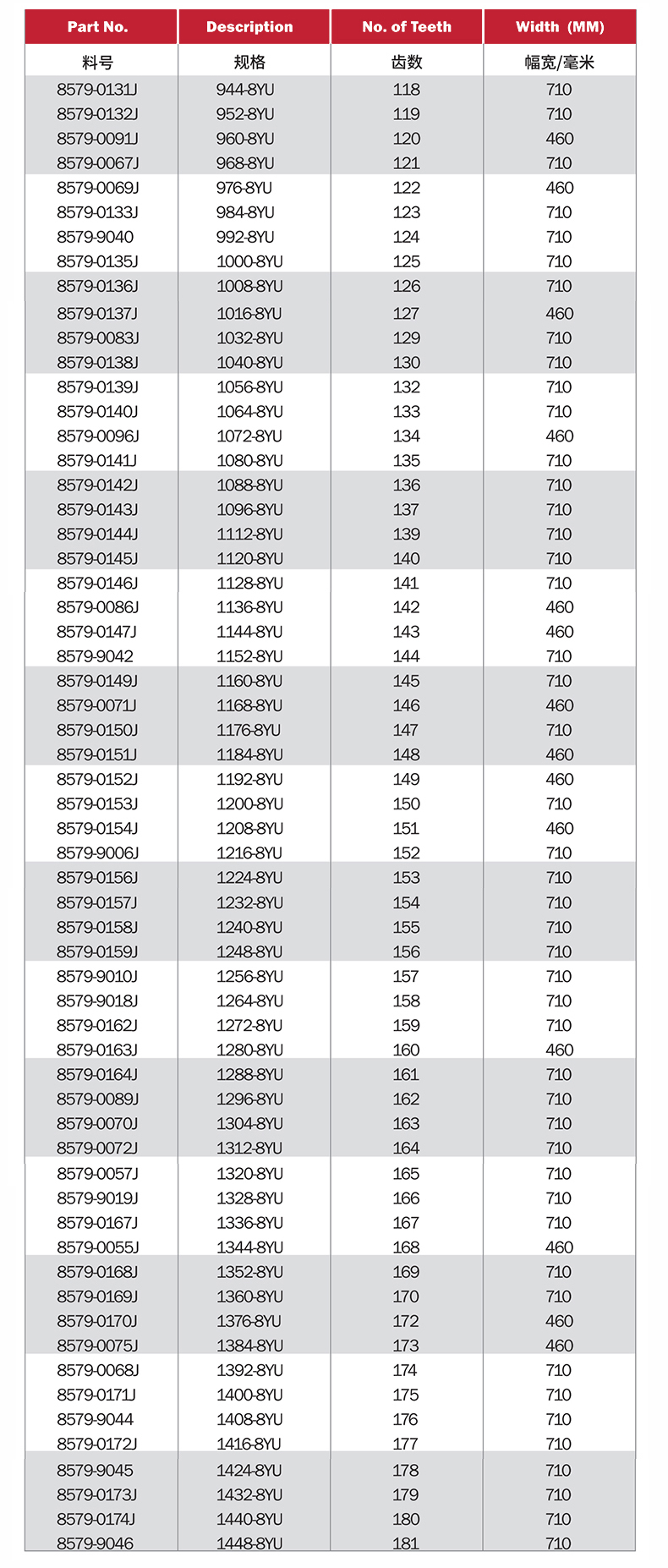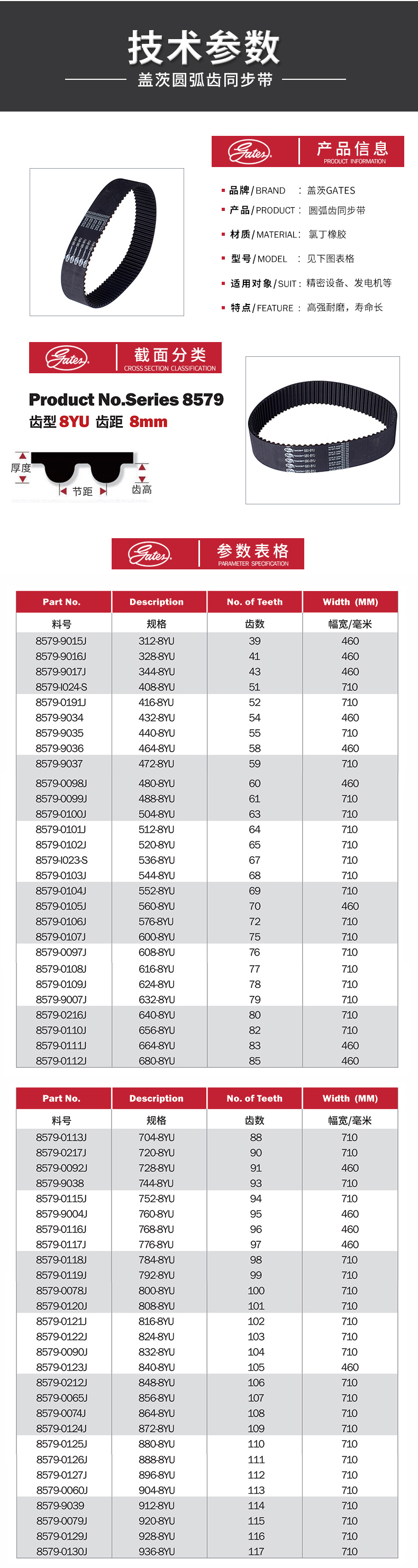盖茨圆弧齿同步带8YU 1296 8YU 1304