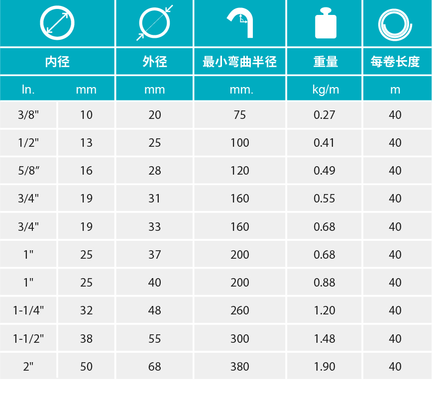 - 【内层】EPDM橡胶 (三元乙丙, 140BI), 白色,食品级,平滑,镜面光滑