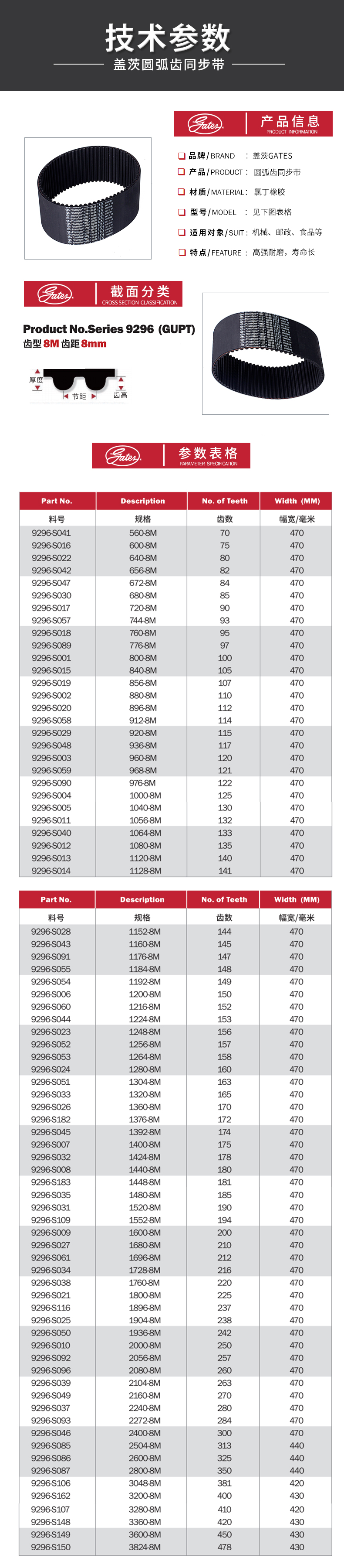 盖茨GATES 保力强 Polychain同步带14MGT-1400