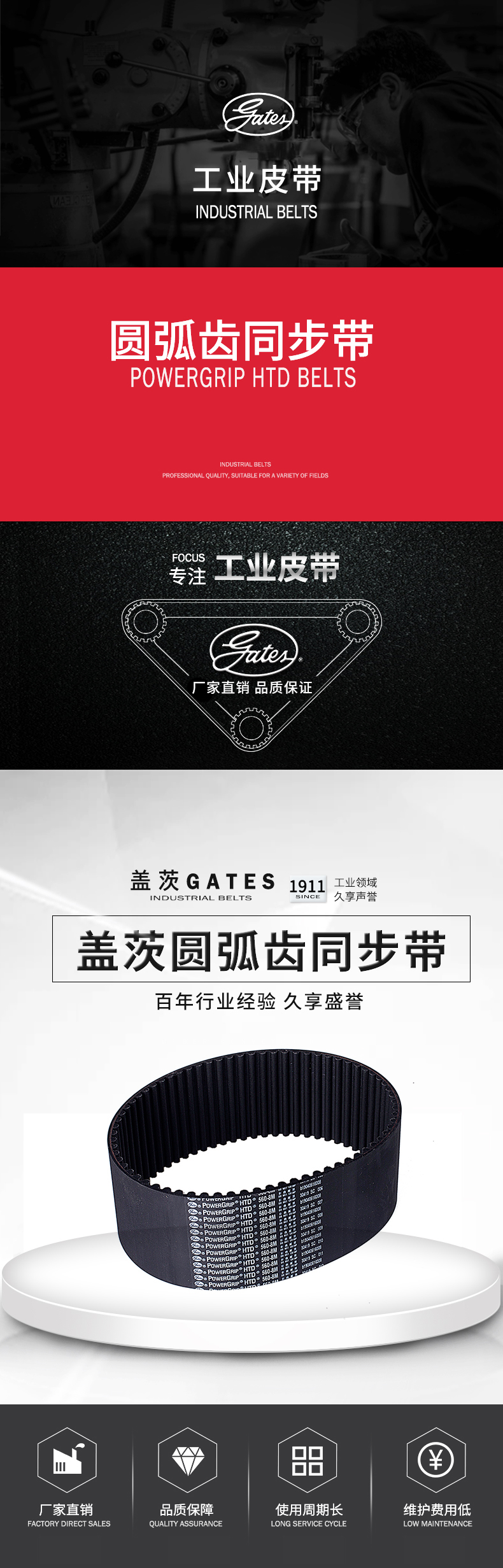 盖茨圆弧齿同步带 PowerGrip HTD 橡胶传动带 工业皮带 1400-8M
