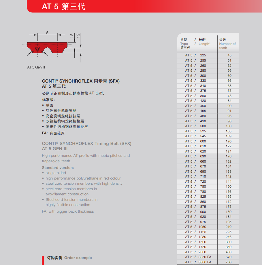 德国马牌Continental 工业皮带 聚氨酯同步带 SYNCHROFLEX AT5 III 第三代