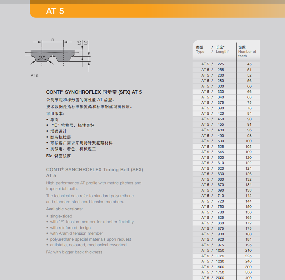 德国马牌Continental 工业皮带 聚氨酯同步带 SYNCHROFLEX AT5 III 第三代