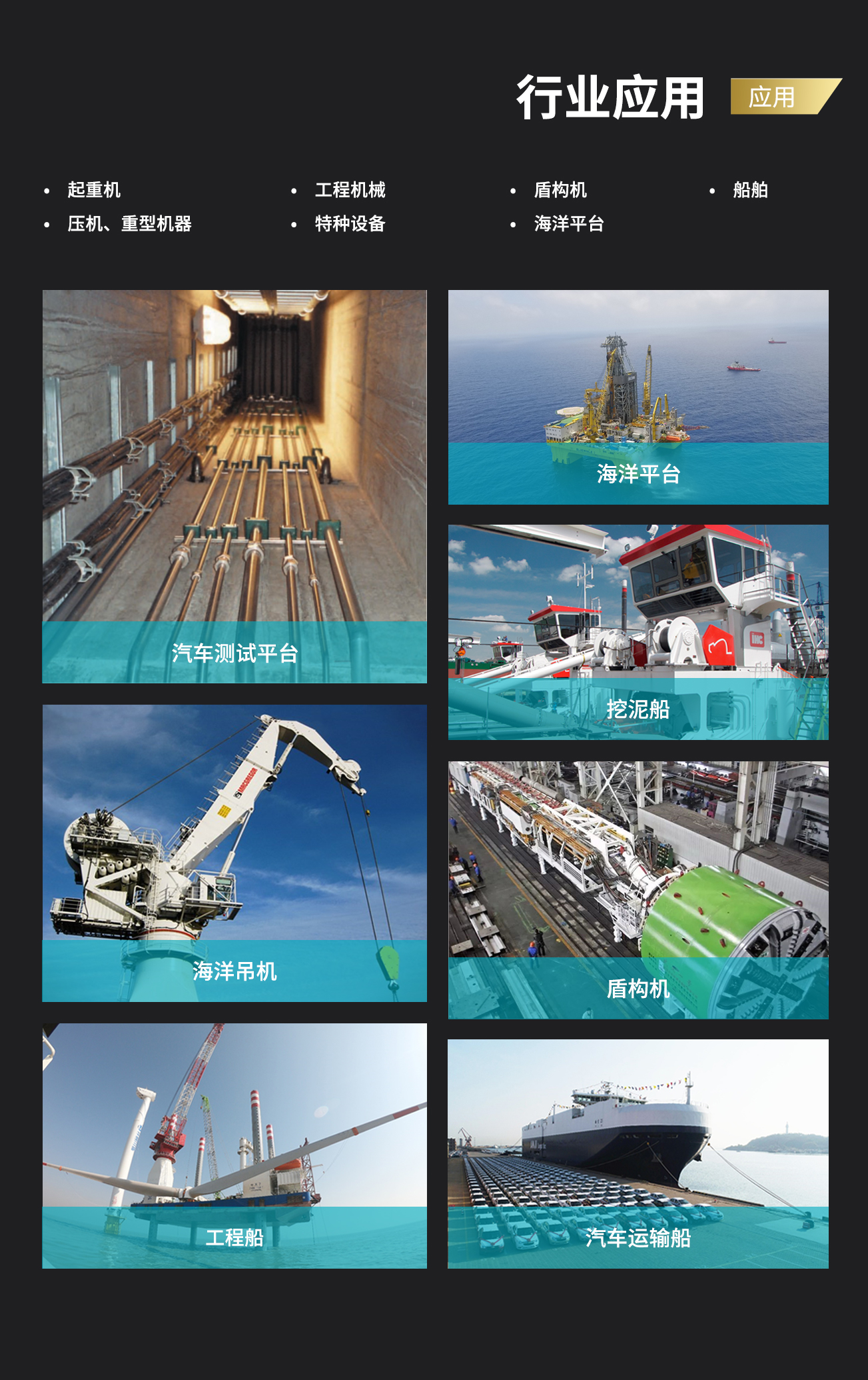 广泛应用于起重机、工程机械、盾构机、特种设备、船舶及海洋平台行业