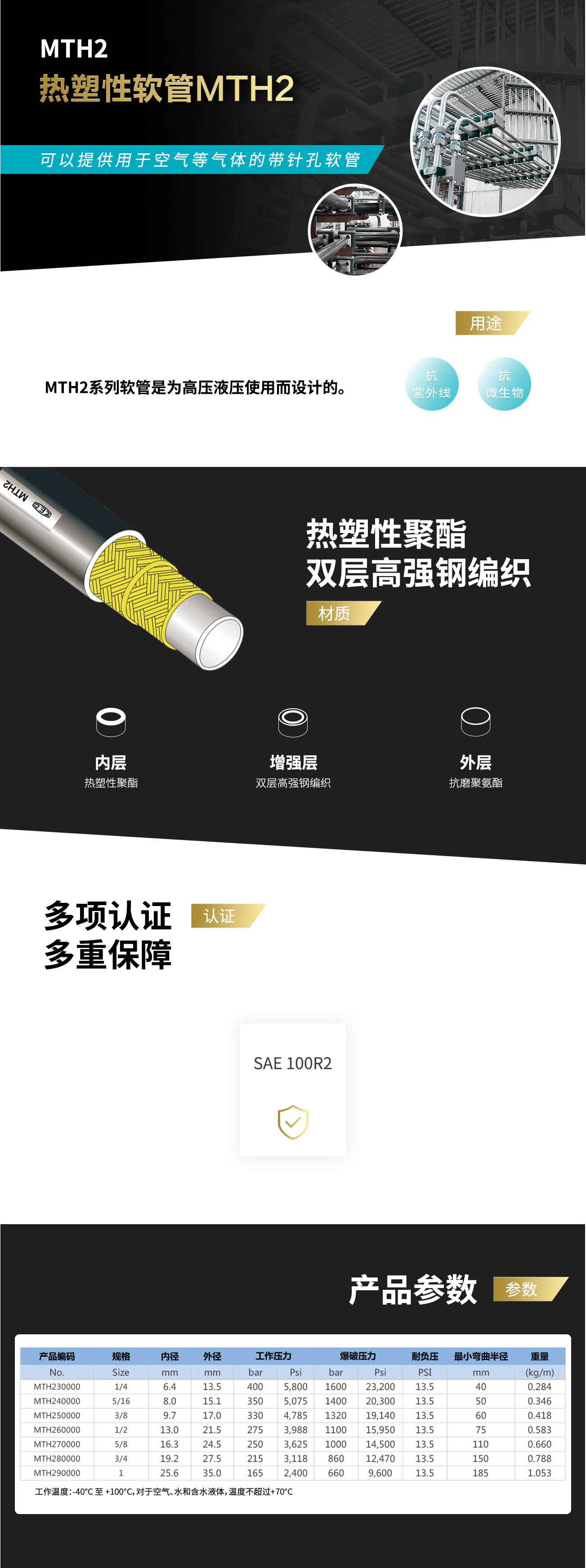 【外层】抗紫外线和抗微生物的抗磨聚氨酯,可以提供用于空气等气体的带针孔软管