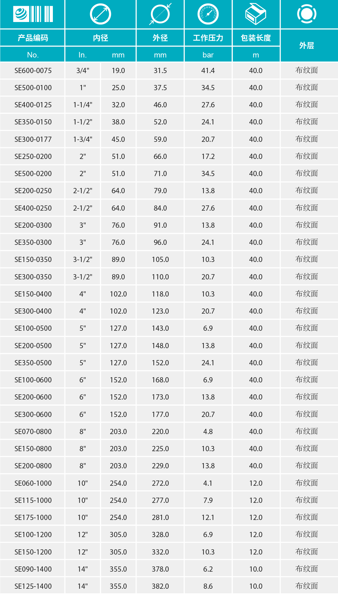 【外层】BR合成橡胶,黑色,高耐磨及具有优良耐老化性能,表面布纹