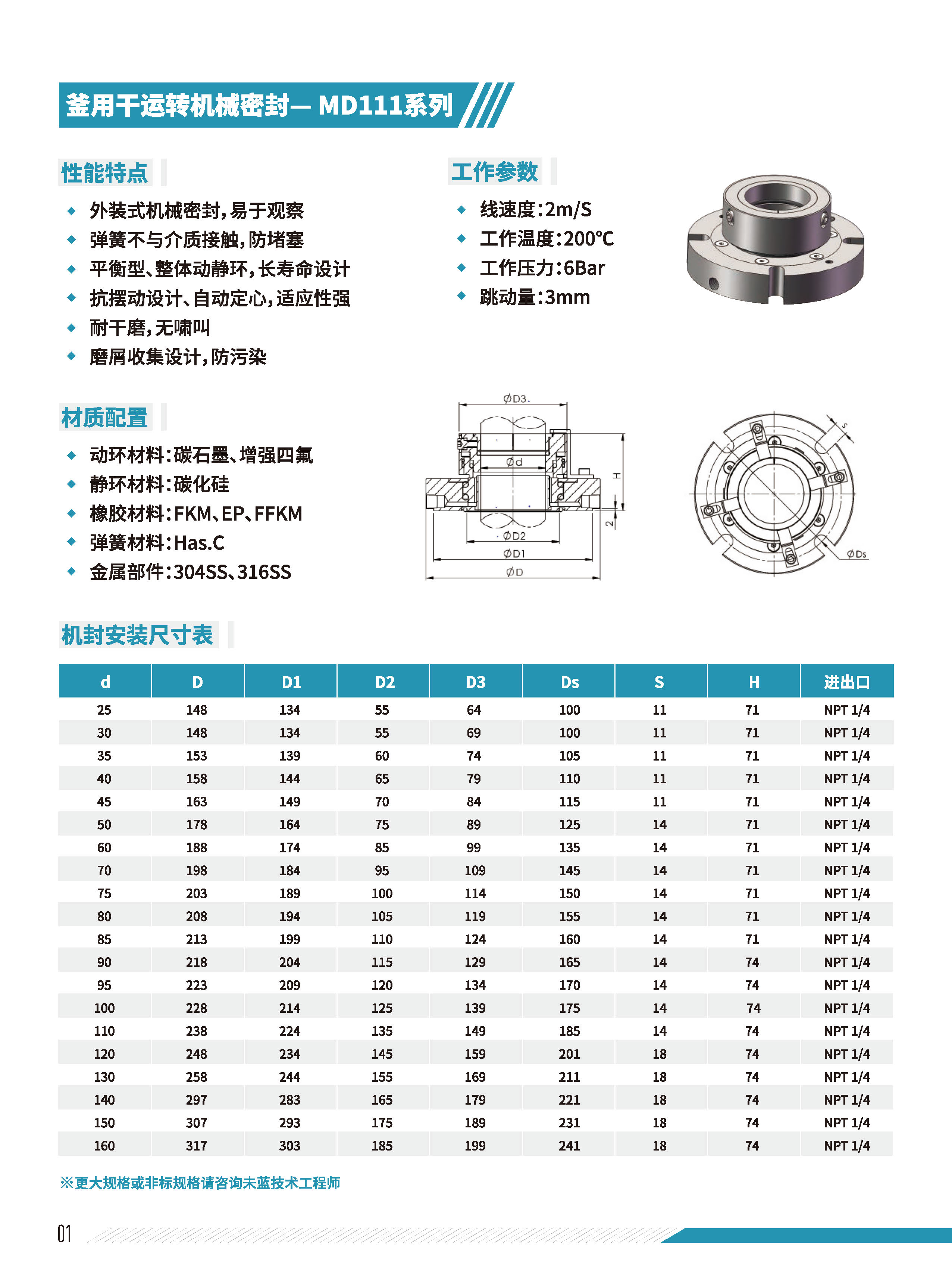 搪玻璃釜用双端面带轴承机封MG111B系列