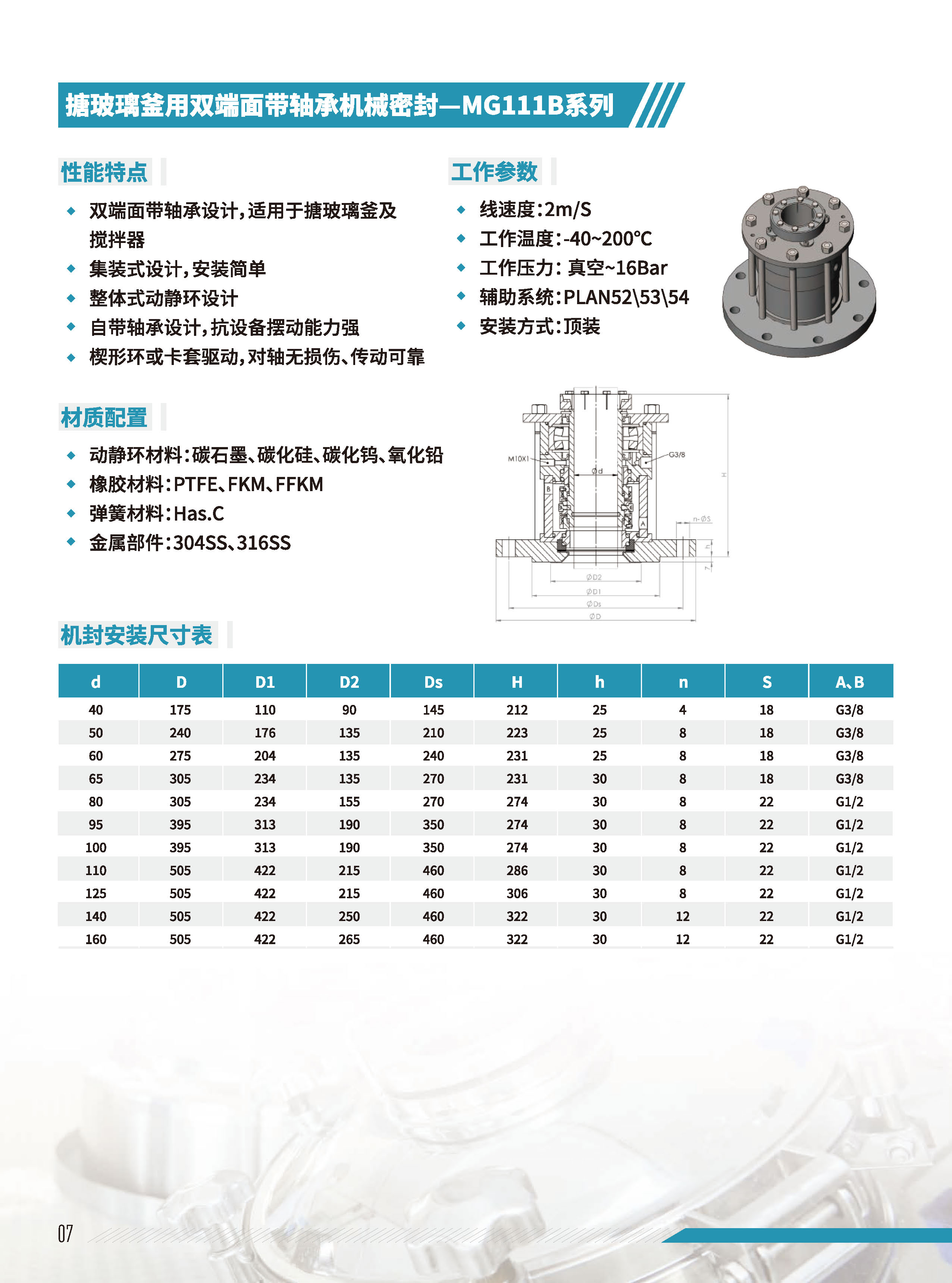 搪玻璃釜用双端面带轴承机封MG111B系列