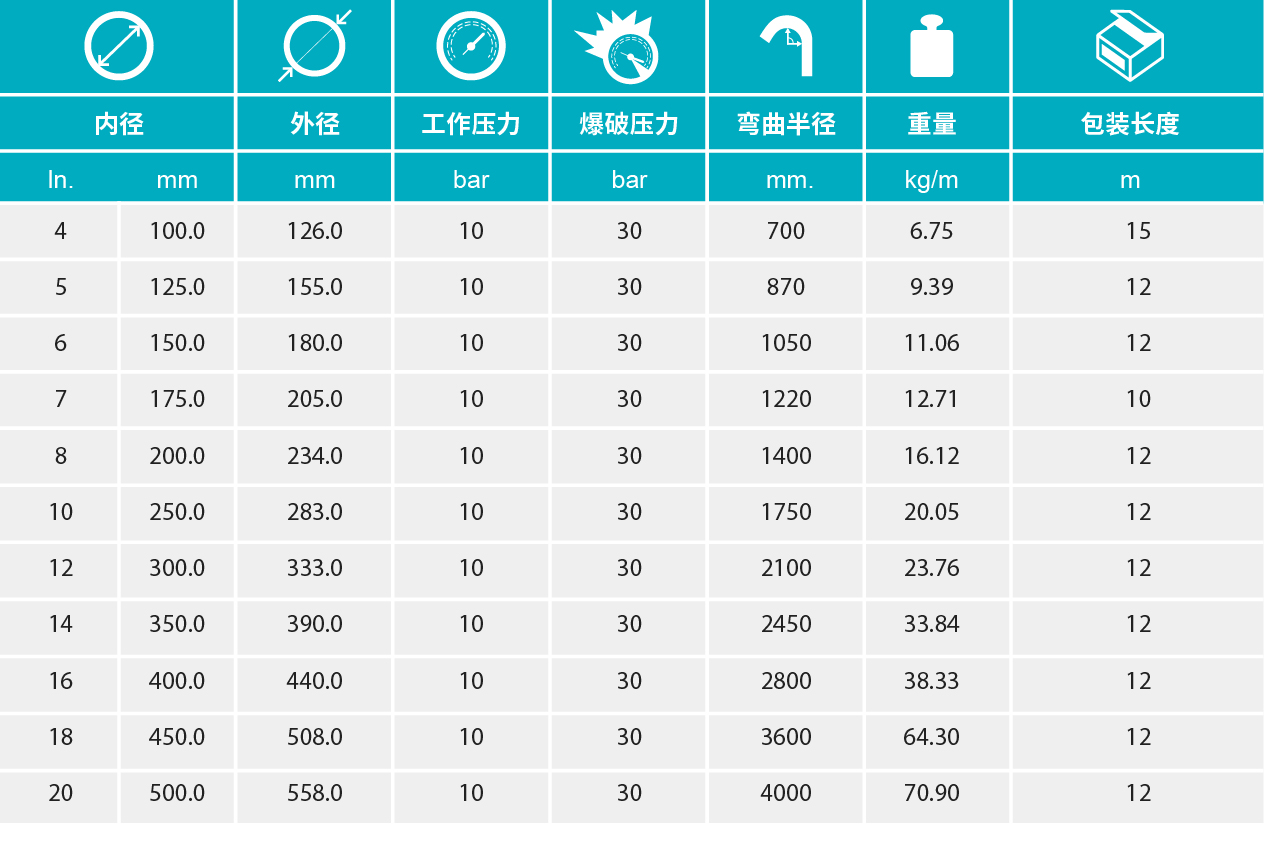 【增强层】ID≤400mm双层钢丝缠绕,ID≥450mm 四层钢丝缠绕