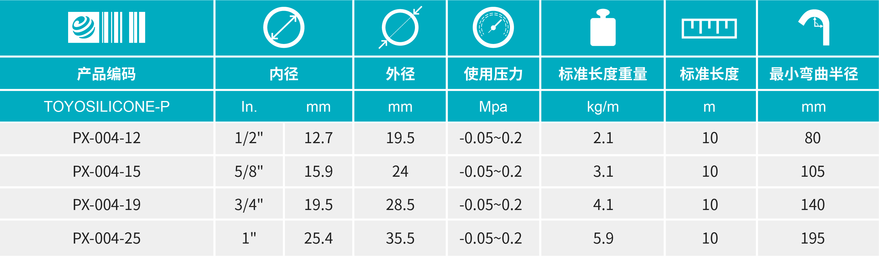 - 硅橡胶制的压送、真空输送两用耐压胶管,能充分发挥硅材料在100℃以内的耐热特性、低溶出性、绝缘性及无臭等特性,可用于食品/饮料行业、半导体行业及工业炉行业等的设备胶管配管。 带有特殊PET树脂线圈,与TOYOSILICONE-S相比,可杜绝生锈的困扰,并且柔软度更高,适合用于狭窄场所的配管。有各种专用接头,可实现更高的生产效率。可用作:工厂设备机械的配管用胶管(填充机、冷却装置、耐热用配管等)。