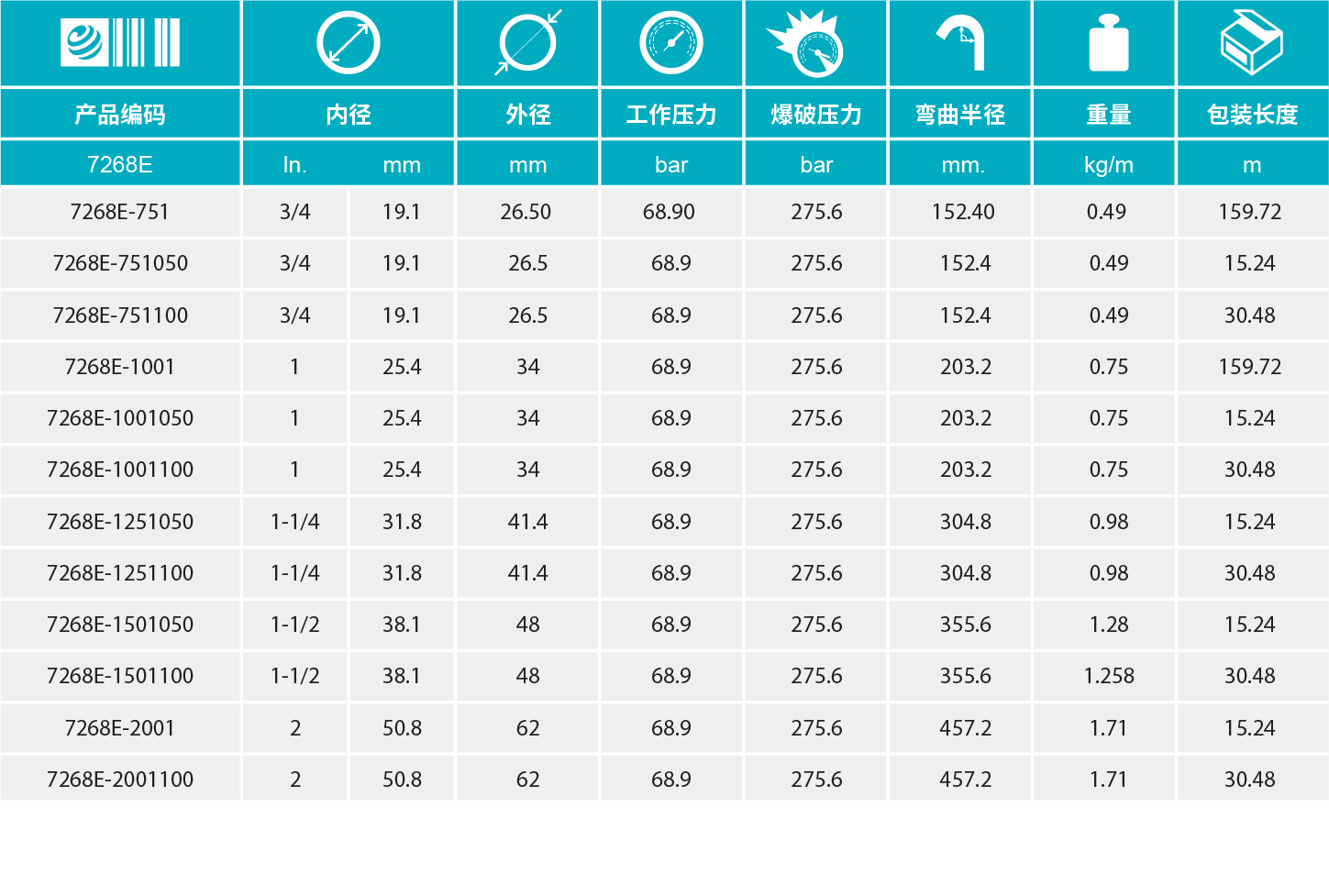 7268E系列是一款多功能高压软管,用于输送气体,一般化学品,油类物质及水等。钢丝编织增强层使得软管具有优异的耐用性, 抗扭结性和耐高压的能力,并能与接头完美连接。7268E通过美国MSHA认证,外胶良好耐磨,耐油和防火花喷溅。 广泛用于建筑,工业,采矿等领域的高压作业。